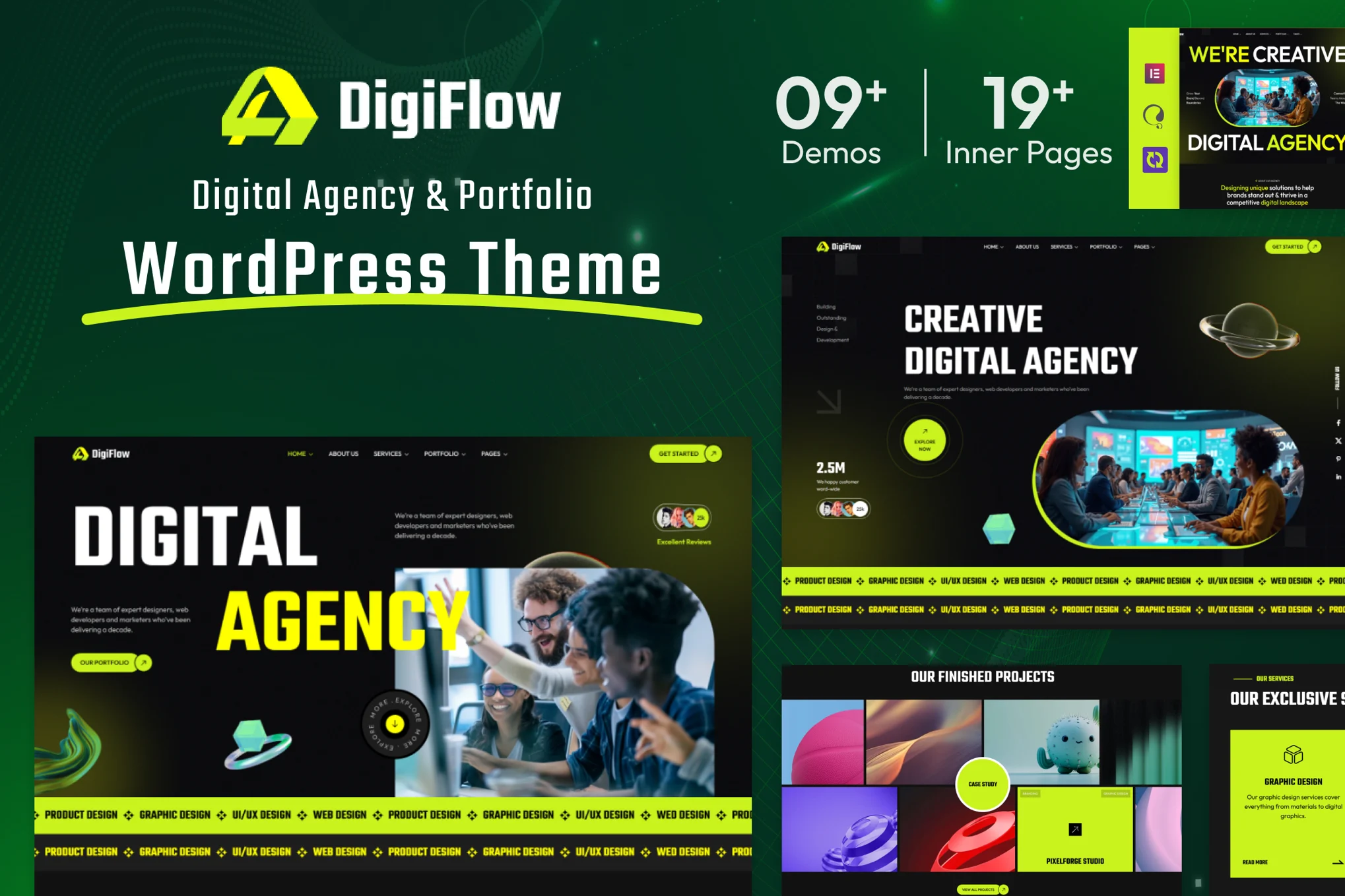 DigiFlow is a creative Digital Agency & Portfolio WordPress Theme designed for creative professionals, digital agencies, freelancers, and portfolio websites. Built with the powerful Elementor page builder, DigiFlow empowers users to craft stunning, fully responsive websites with ease — no coding required.