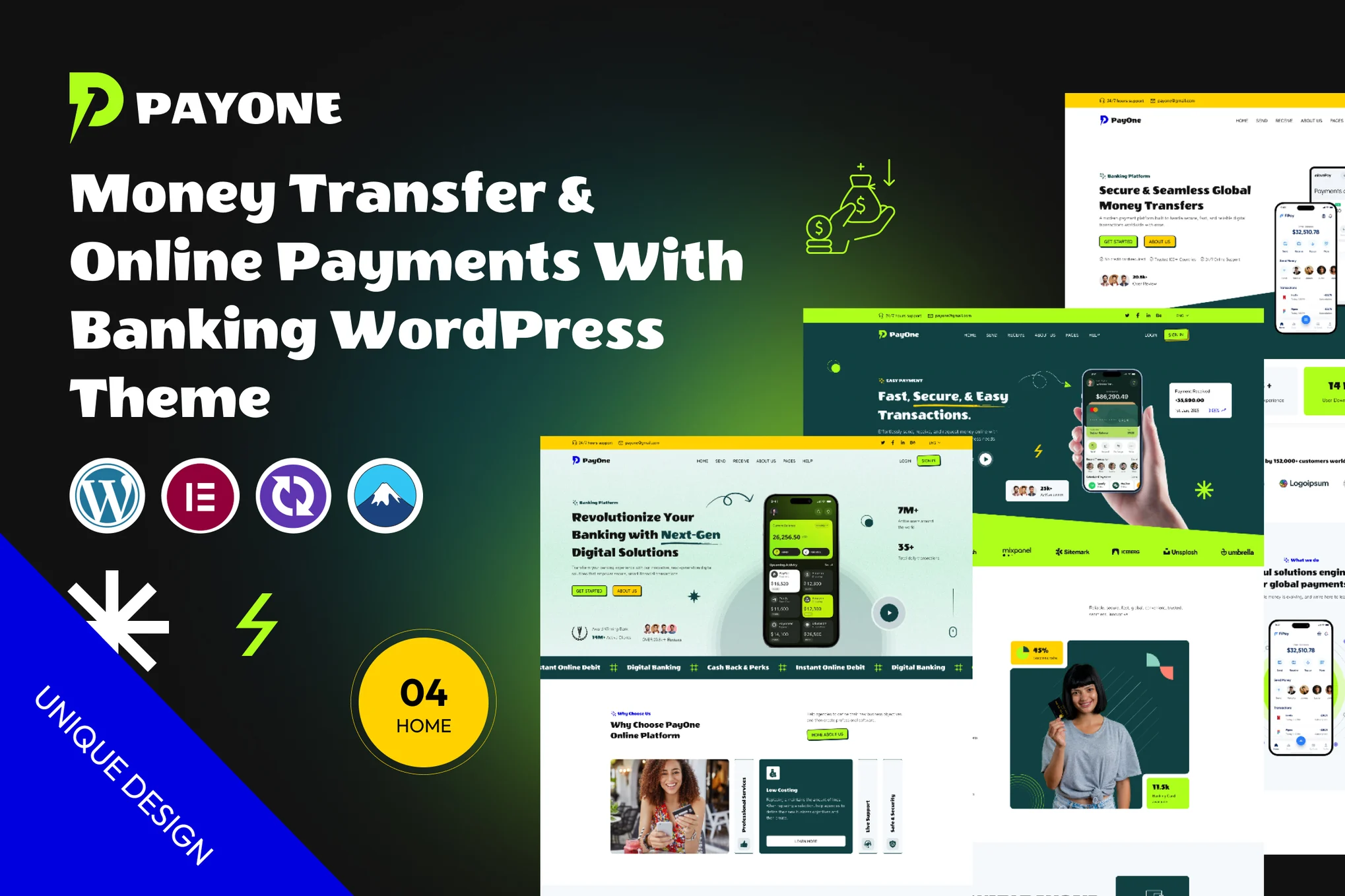 PayOne is a modern, secure, and fully responsive HTML template designed for online payment systems, digital wallets, money transfer platforms, fintech startups, and banking websites. With a sleek front-end site and a powerful user dashboard, PayOne helps you build a complete digital payment experience right out of the box.
